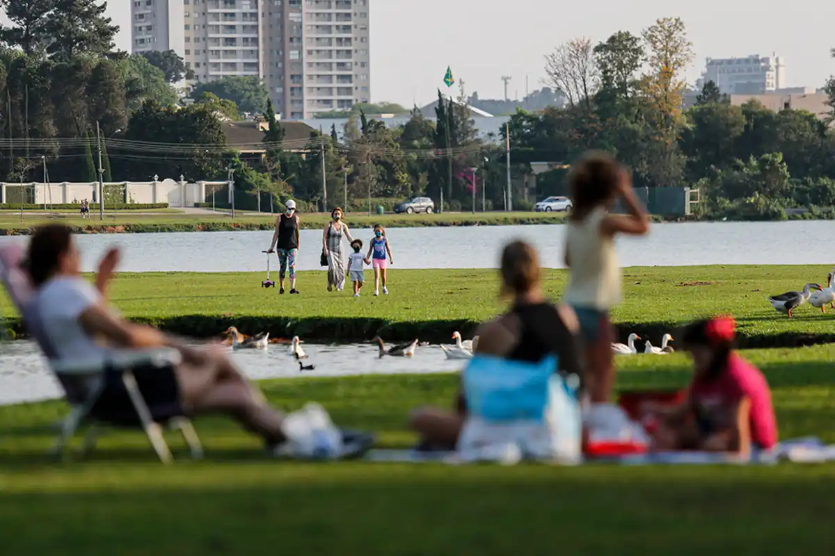 Tempo em Curitiba: este domingo deverá continuar quente e instável na capital, com máxima de 32°C, sensação até 34°C. Mas tem frente fria chegando entre 30 e 31 de dezembro para aliviar o calor.