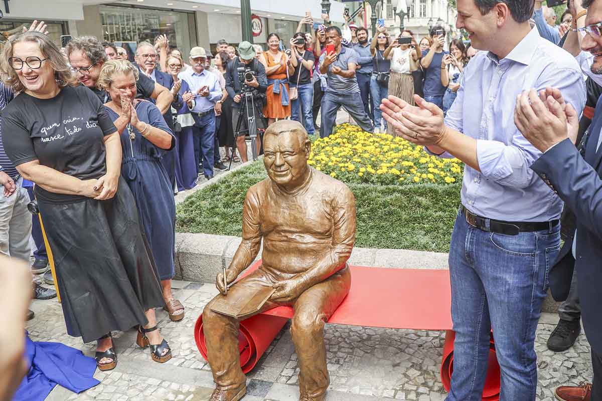 Jaime Lerner é homenageado com escultura na Rua XV, como parte das comemorações pelos 333 anos da cidade