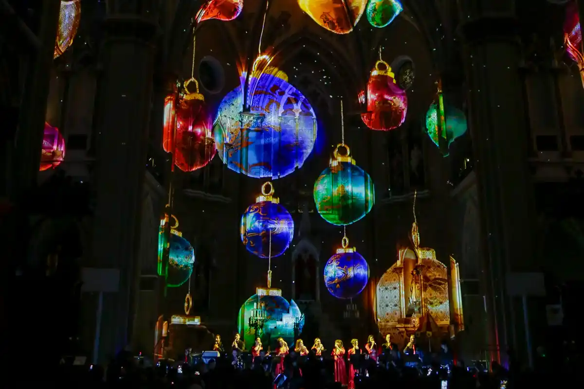 Na Praça Tiradentes, o interior de um espaço religioso vira tela para projeções, enquanto no Passeio Público famílias encontram atividades, brinquedos e atrações temáticas.